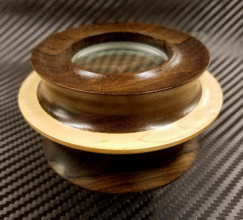 ZiricoteMapleRing Published May 15, 2017 at 800 × 725 in Spin Stations 4″ walnut and maple PSS with 2″ double concave boro lens ($60)