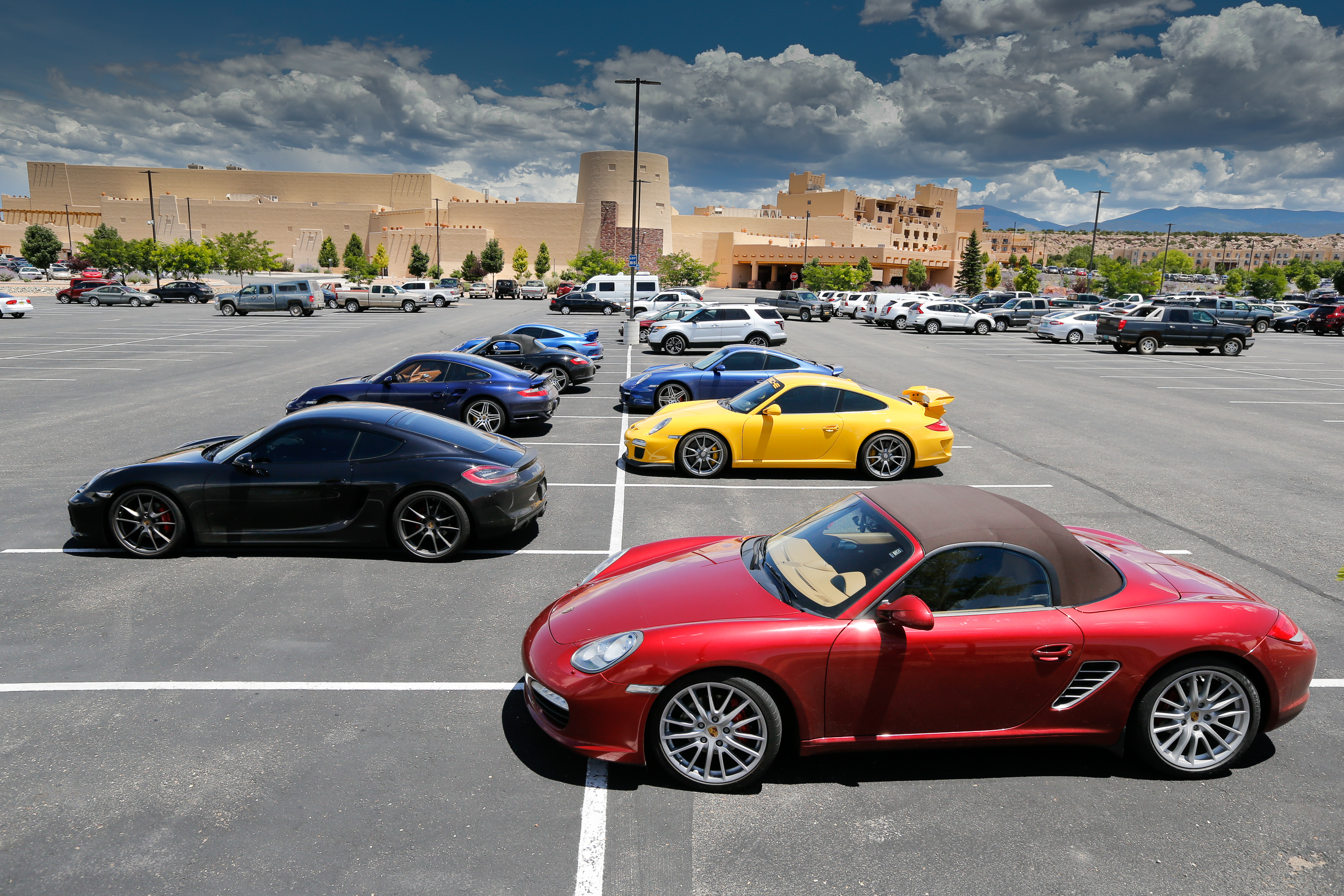 A mid-morning start allowed those averse to clear sunlight some more time in bed, and after breakfast the group hit the roads east of Taos. Driving through Angel Fire and then taking the gem of a Porsche road—Highway 434—there was some traffic to contend with, but otherwise beautiful high country scenery and enough corners to stay focused on the main task. A few brief thundershowers didn’t dampen anyone’s enthusiasm, and speeds adjusted to the conditions without a second thought. Despite their incredible dry weather performance, Porsches prove to be wonderful, and safe, cars in all weather conditions. Once the High Road from Taos was completed, some members of the group headed straight home from Pojoaque while others stopped at Gabrielle’s for some tableside-prepared guacamole and fine New Mexican food.